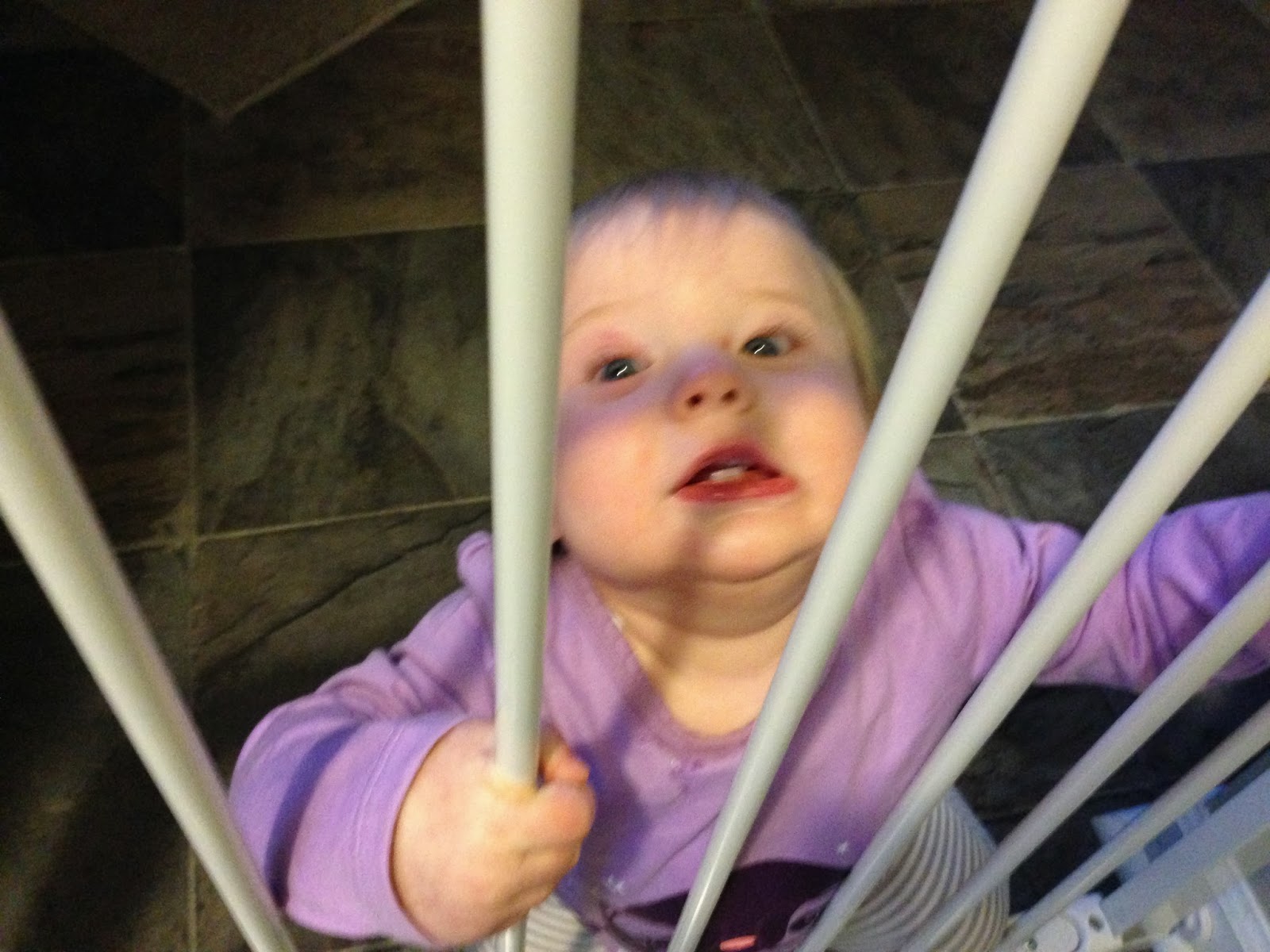 To remember the "The Pink of 2013" I had to take these pics of our cutie on the way to work. I tell ya, she has a sense of humor that is just starting to come into its own - the 2nd one is her new go to face HA! Oh and we don't imprison her, this is just how she hangs on her baby gate ;-)