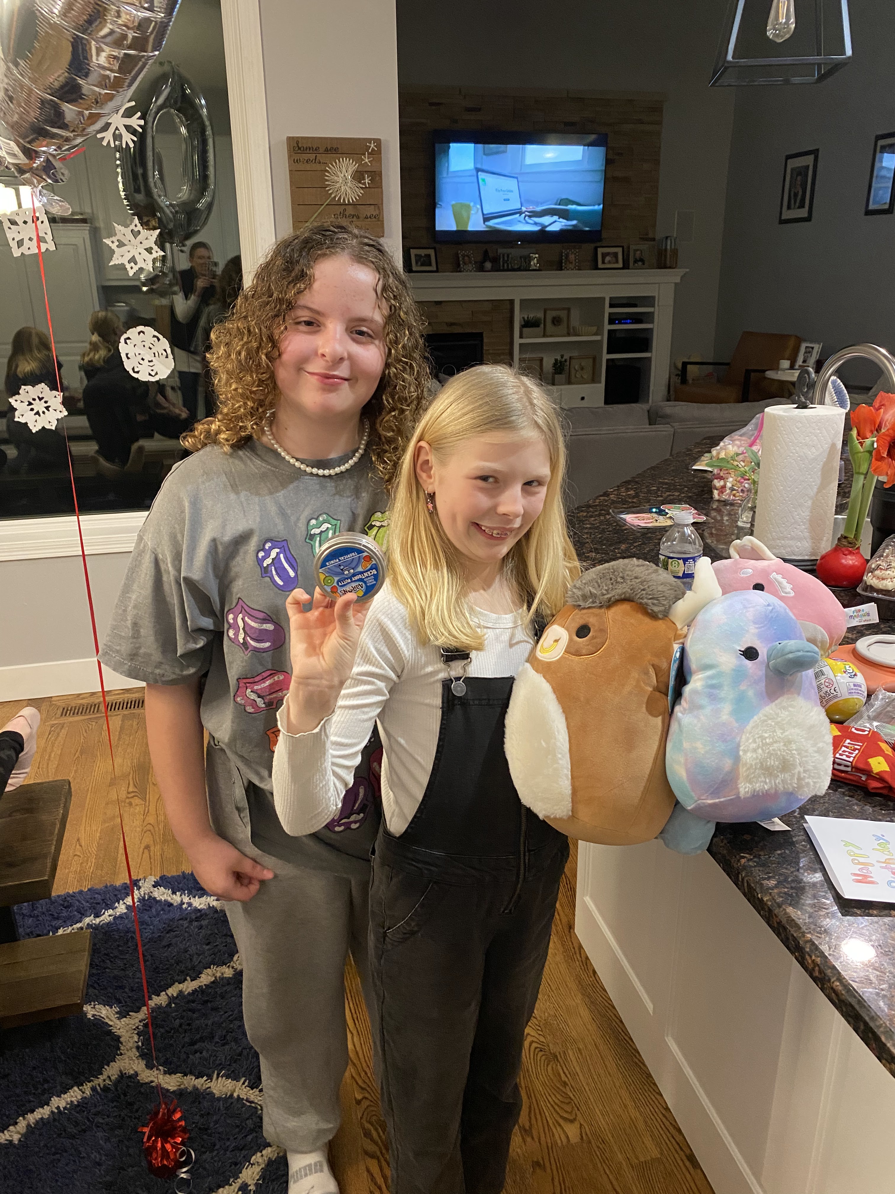 - She opened presents in the morning and then got to see her "card my yard" sign in the front yard on her way to the bus